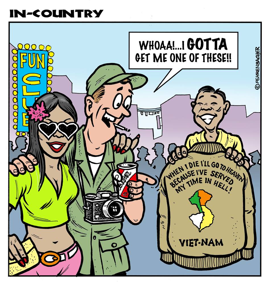 Phil enlisted in the Army in 1965 where he served for years in Vietnam. He became a graphic designer and has worked for the state of Oregon for 26 years. He retired in 2003 and started the Cartoon "In-Country". The cartoons reflect his experiences during his tour of duty in South Vietnam.